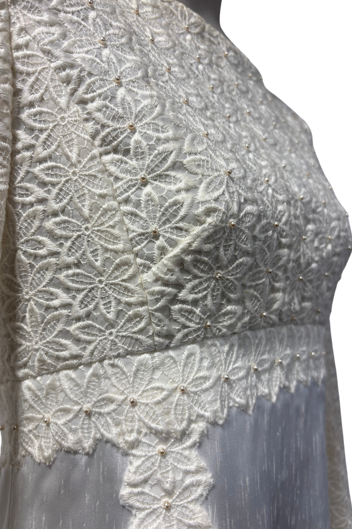 Vintage 1960s/70s A-Line Wedding Dress with Embroidered Floral Detail