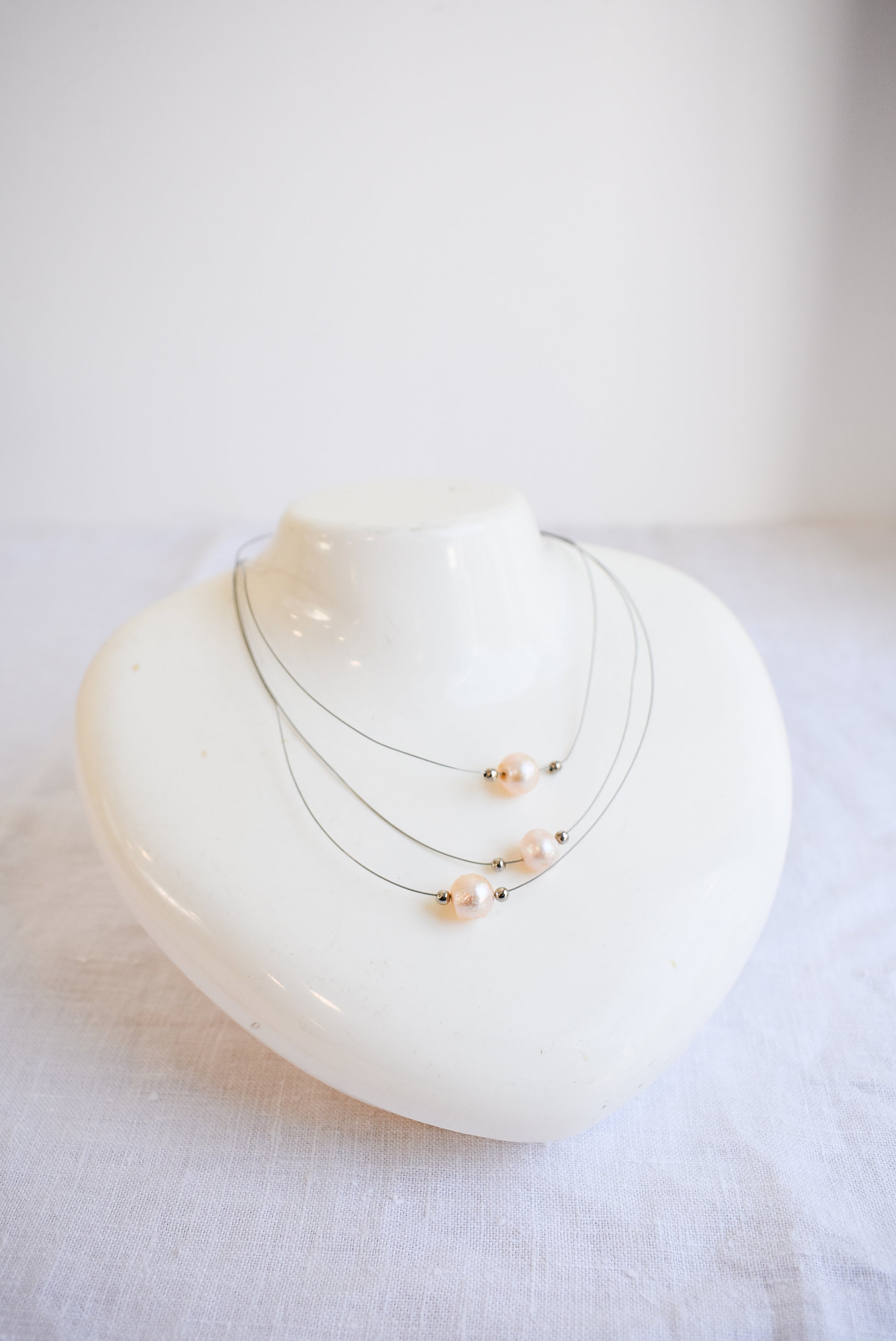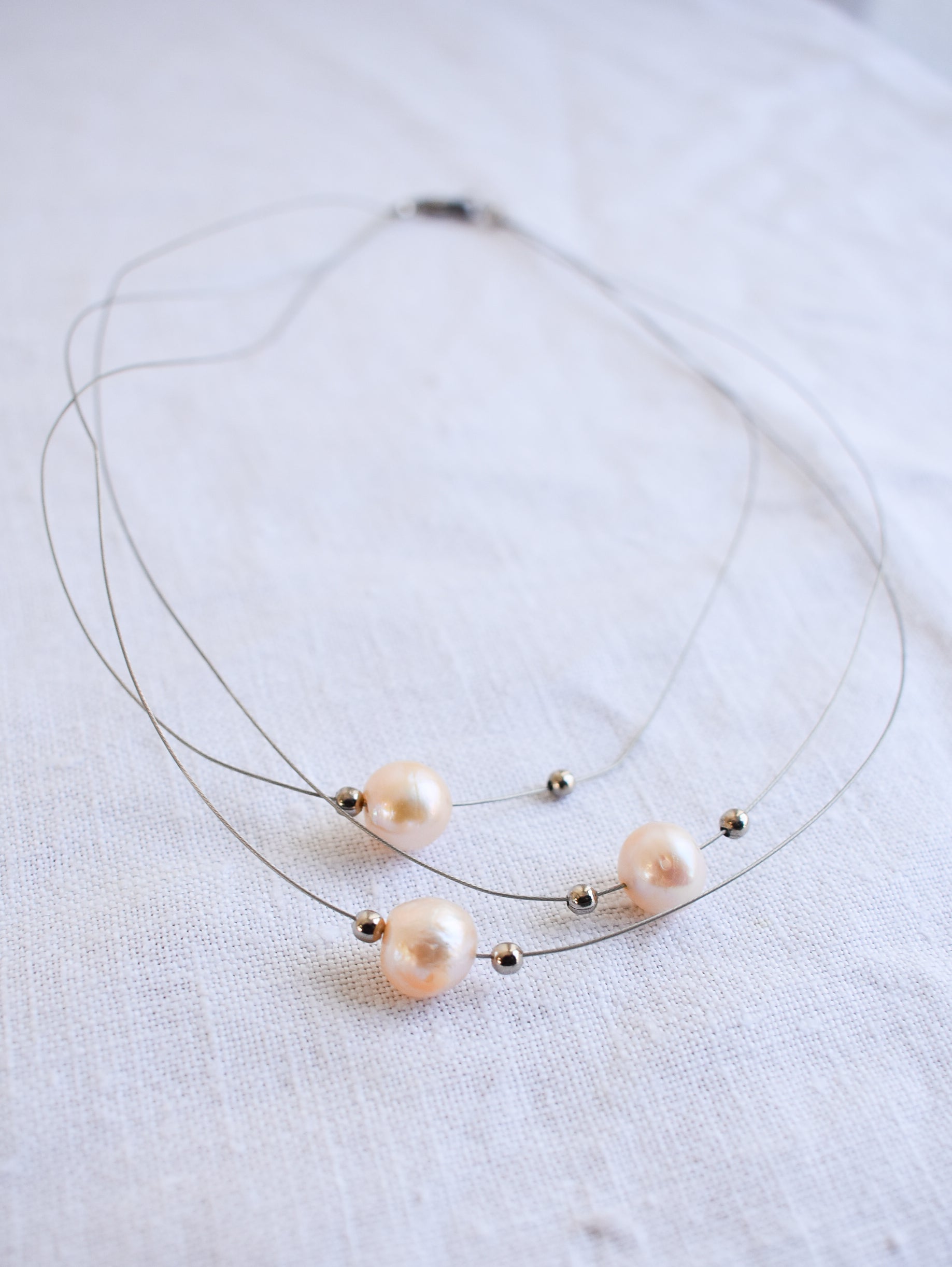 Gorgeous cultured pearl silver bead wire necklace