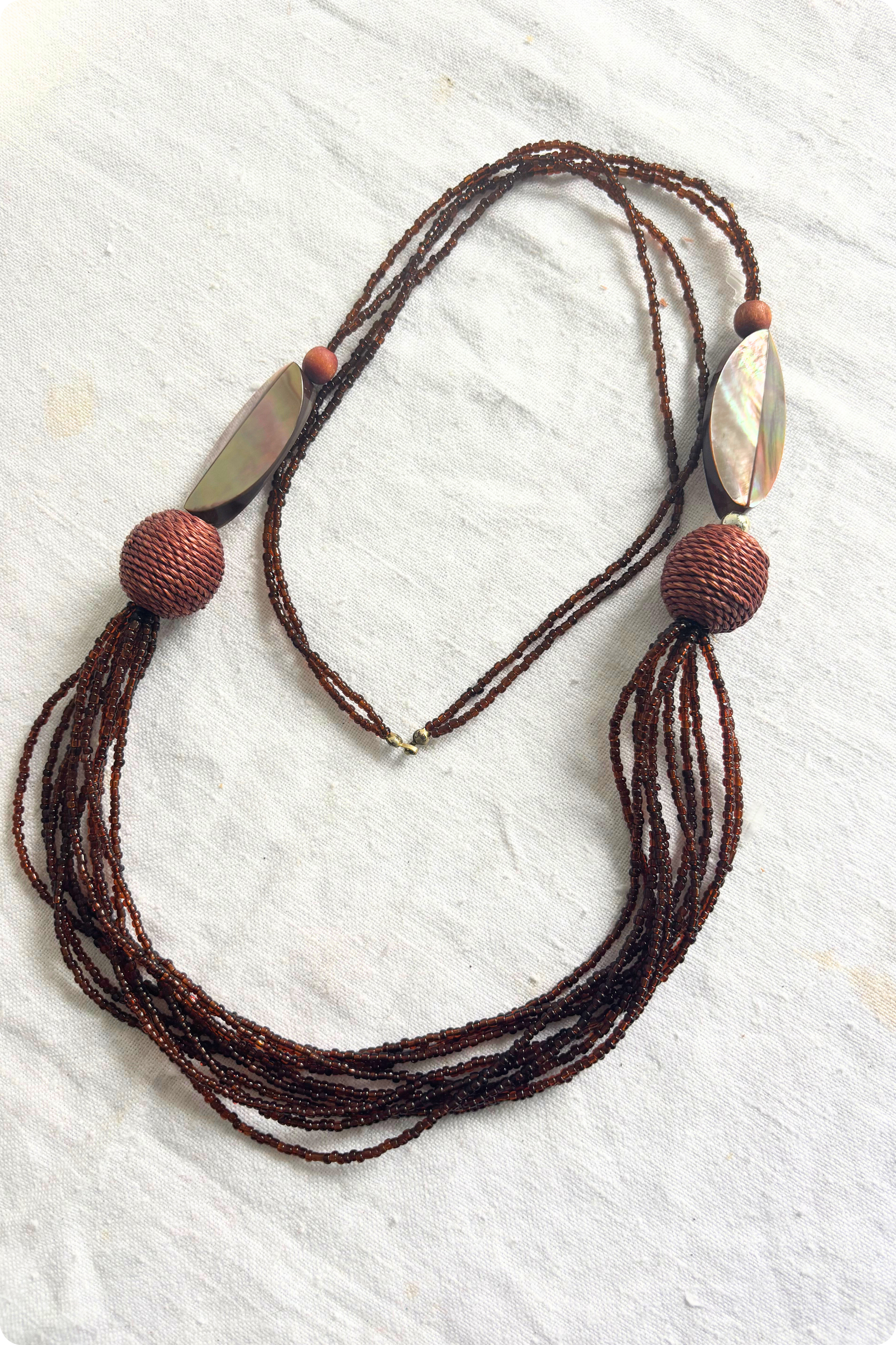 - Description: This long brown beaded necklace is a versatile accessory that adds a touch of elegance to any outfit. The length allows for adjustable styling and the beads offer a unique texture. Perfect for both casual and formal occasions, it is a must-have for any fashion-forward individual.