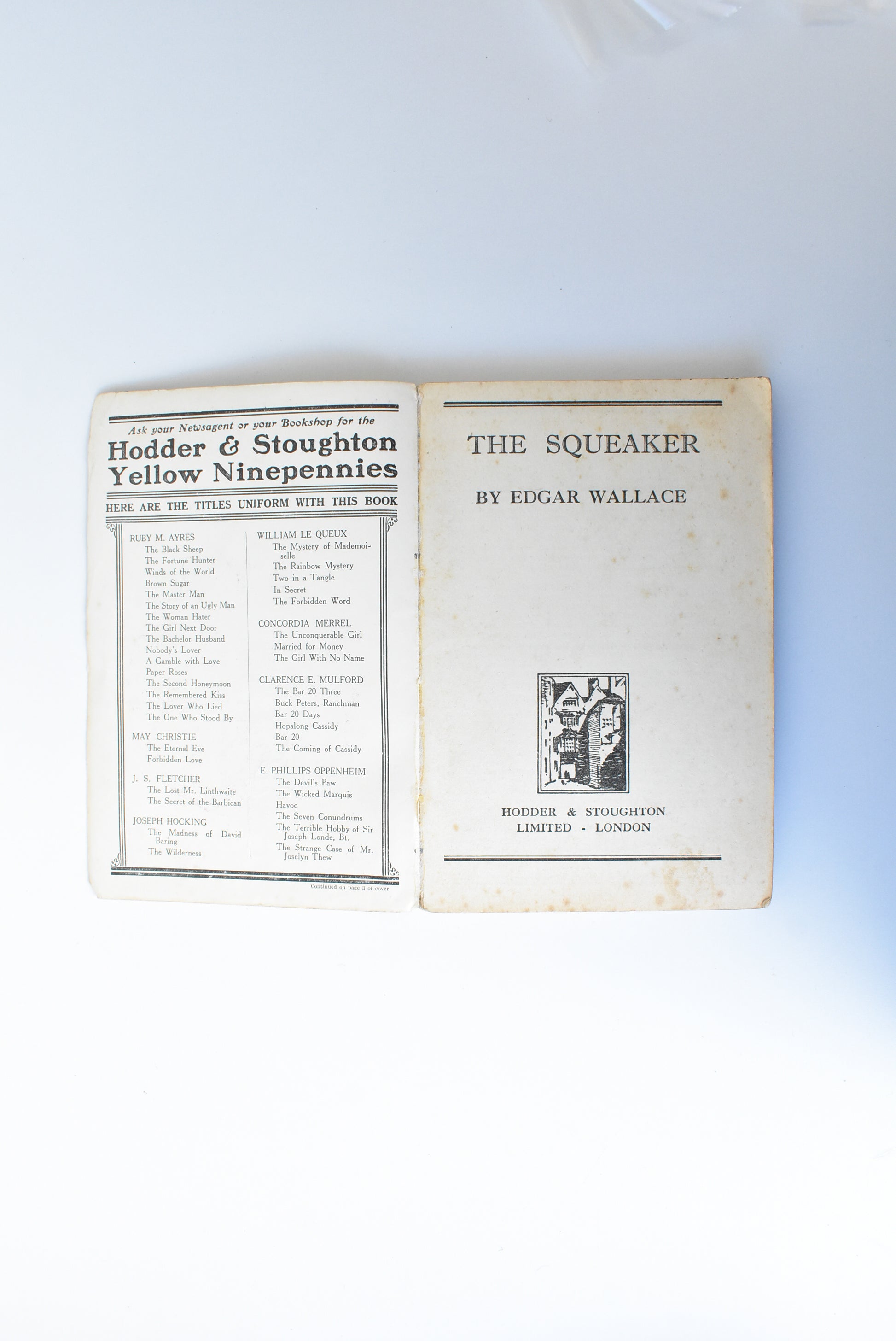 - Description: From the 'Yellow Ninepennies' collection, The Squeaker, by Edgar Wallace. We think published in 1930's...