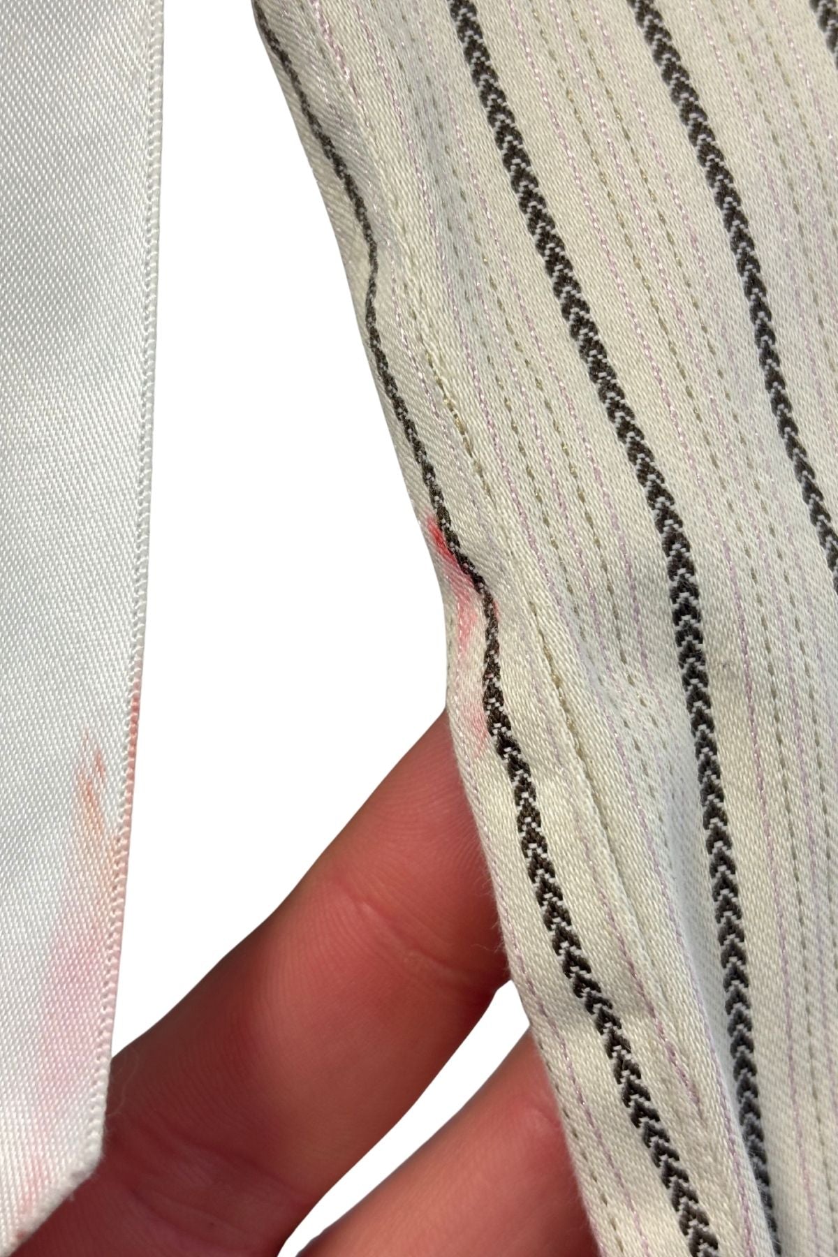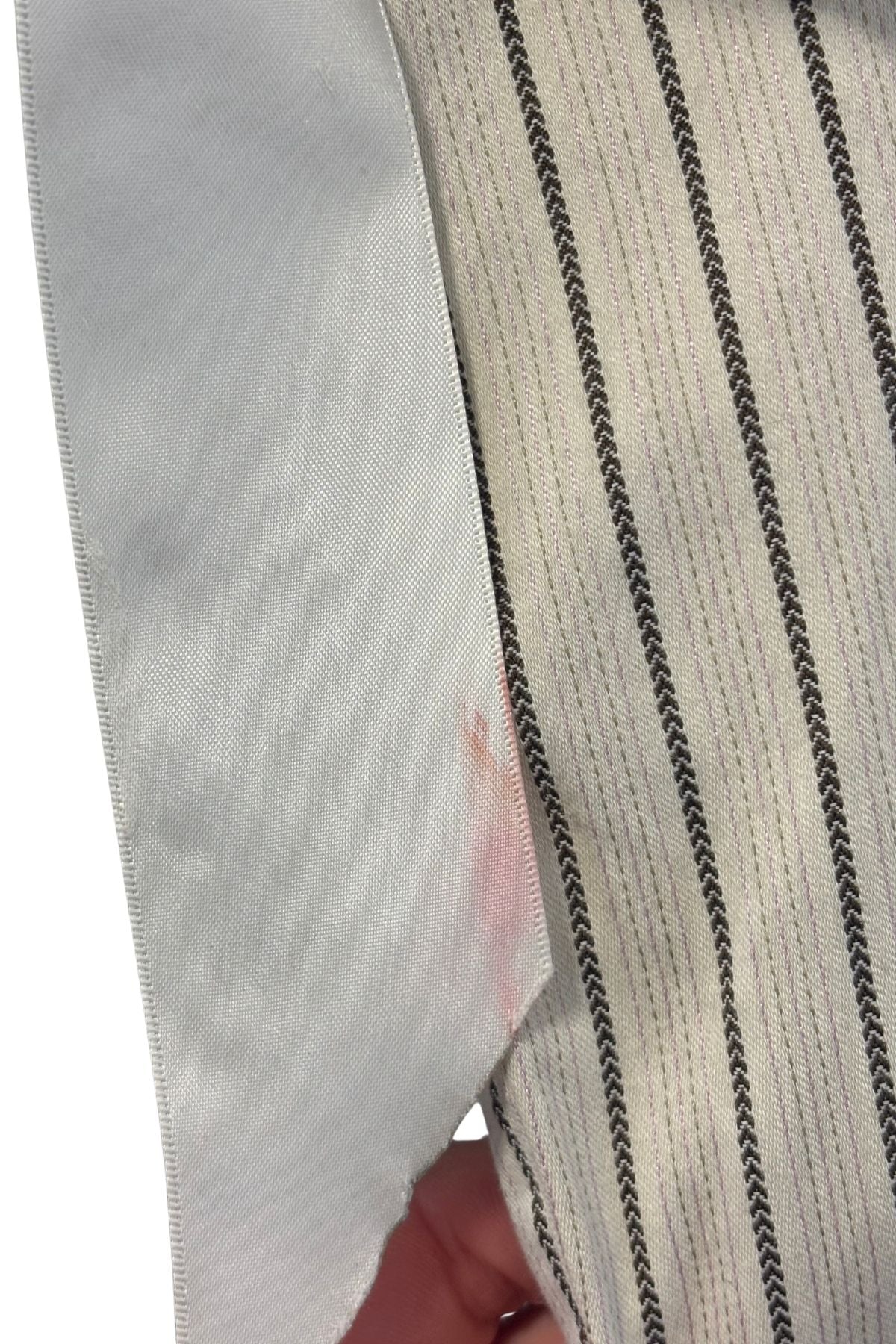 - Description: This Hippocampe Paris blazer in size S combines classic pinstripe elegance with a distinctive satin bow detail for a unique, feminine touch. Crafted to offer a sleek fit, it effortlessly enhances your wardrobe with a blend of sophistication and charm, suitable for both formal occasions and stylish everyday wear.