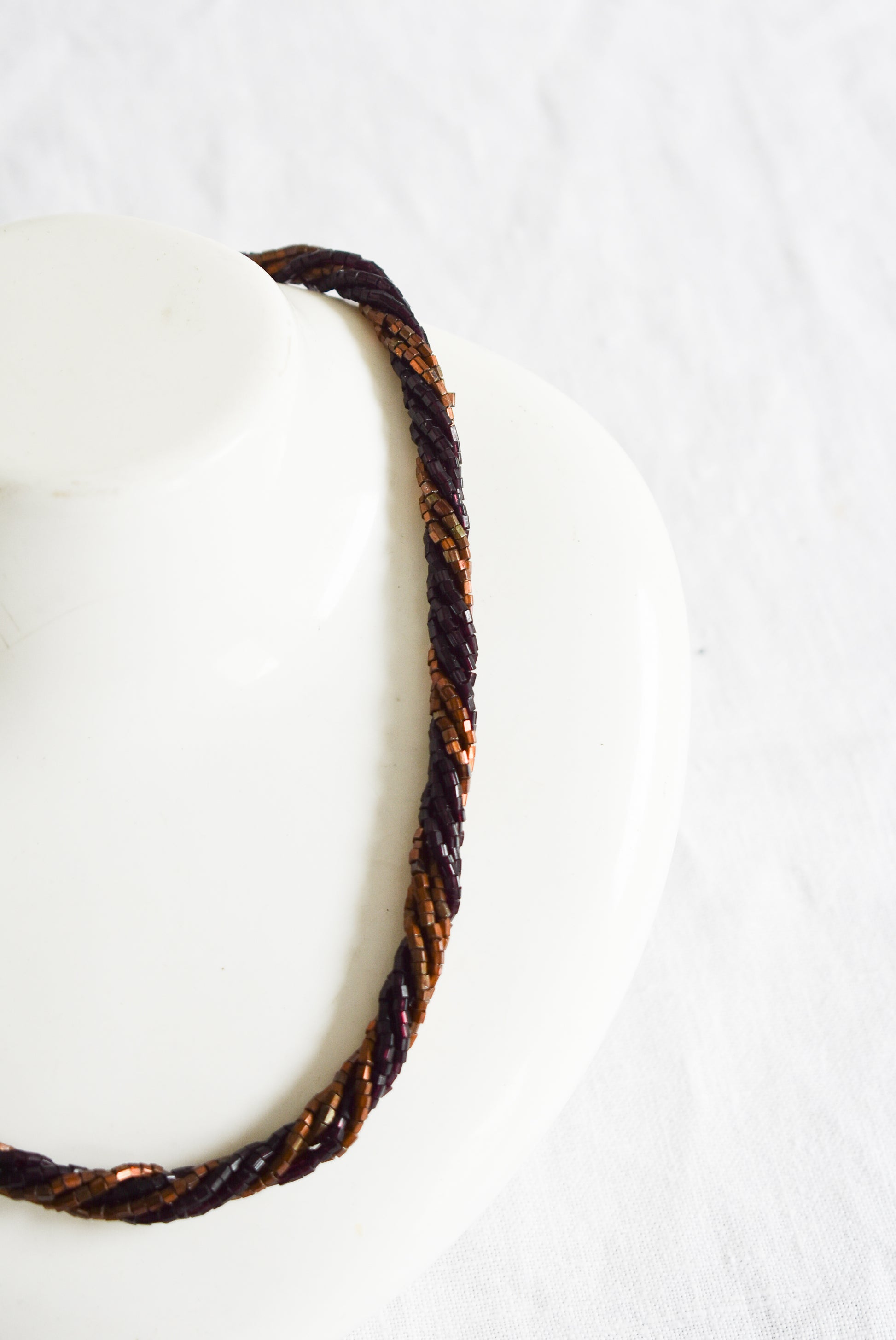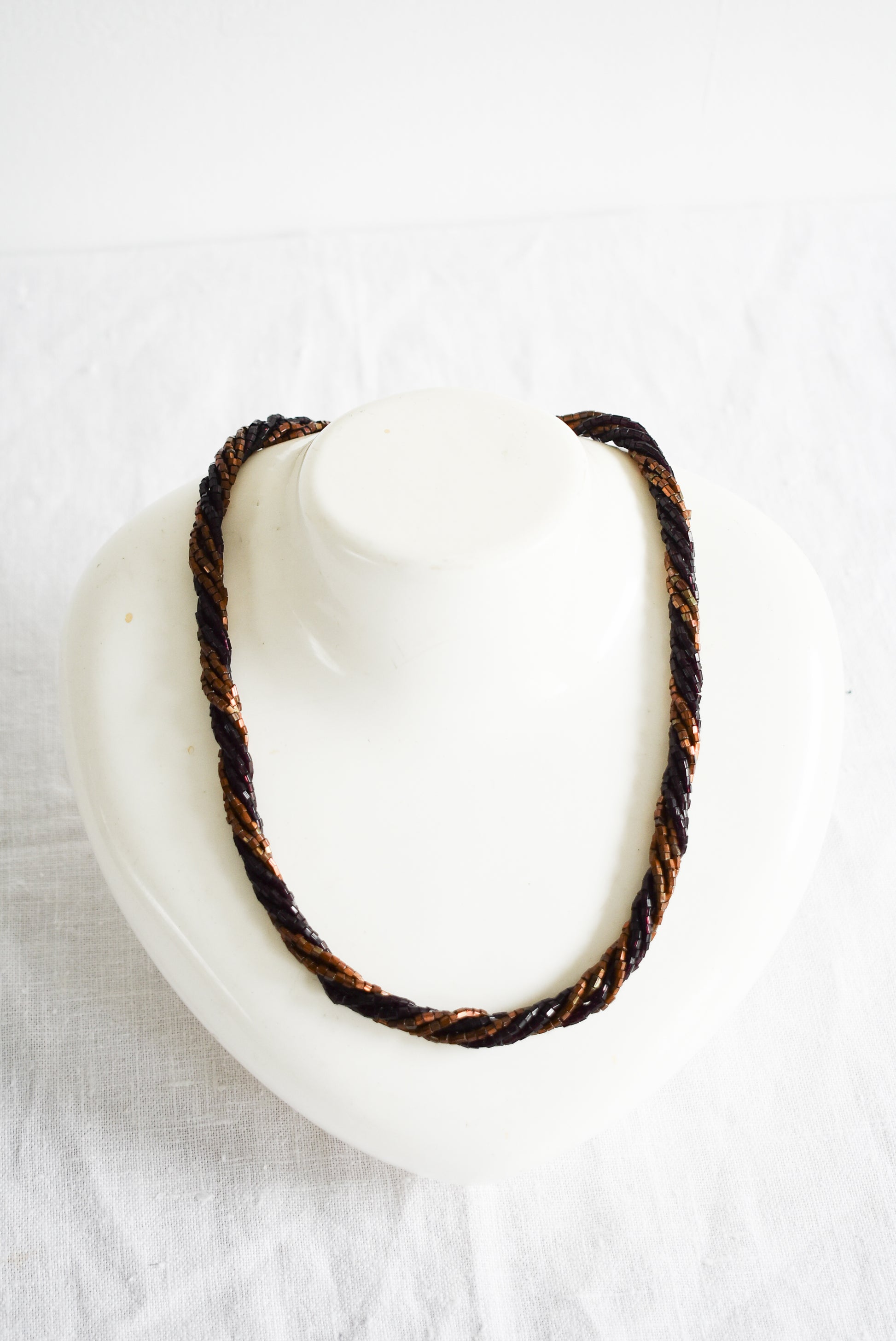 Retro brown glass bead twist necklace