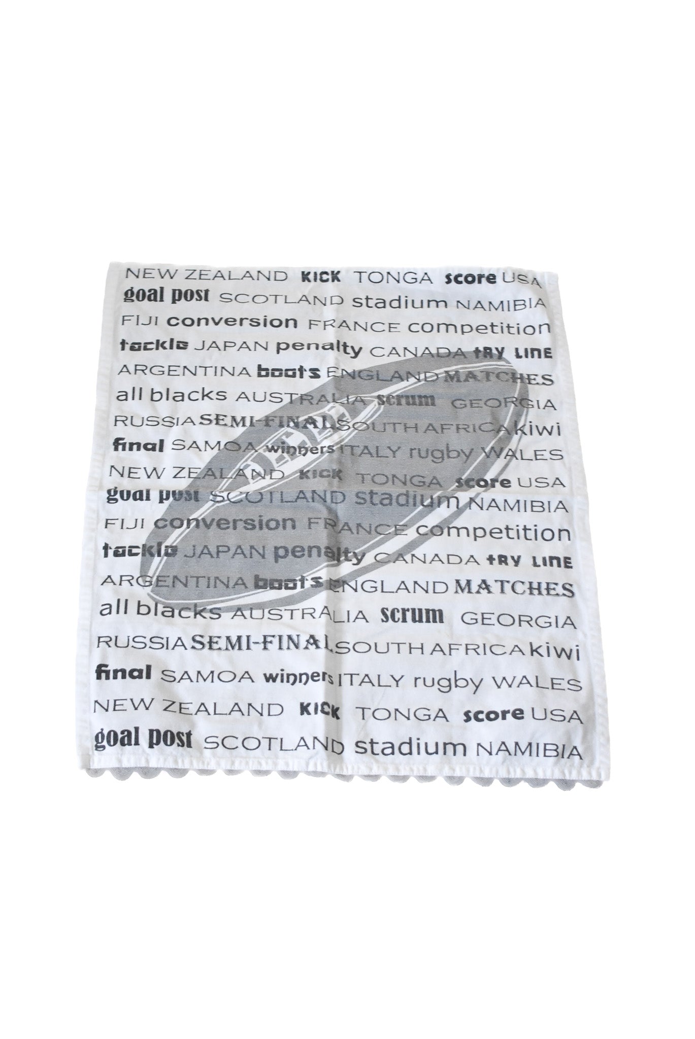 - Description: This high-quality Rugby World Cup tea towel is a must-have for any fan. Made from 100% cotton, it features the official tournament logo and colors. Perfect for drying dishes or displaying team pride in the kitchen. Represent your favorite team in style with this practical and stylish tea towel.