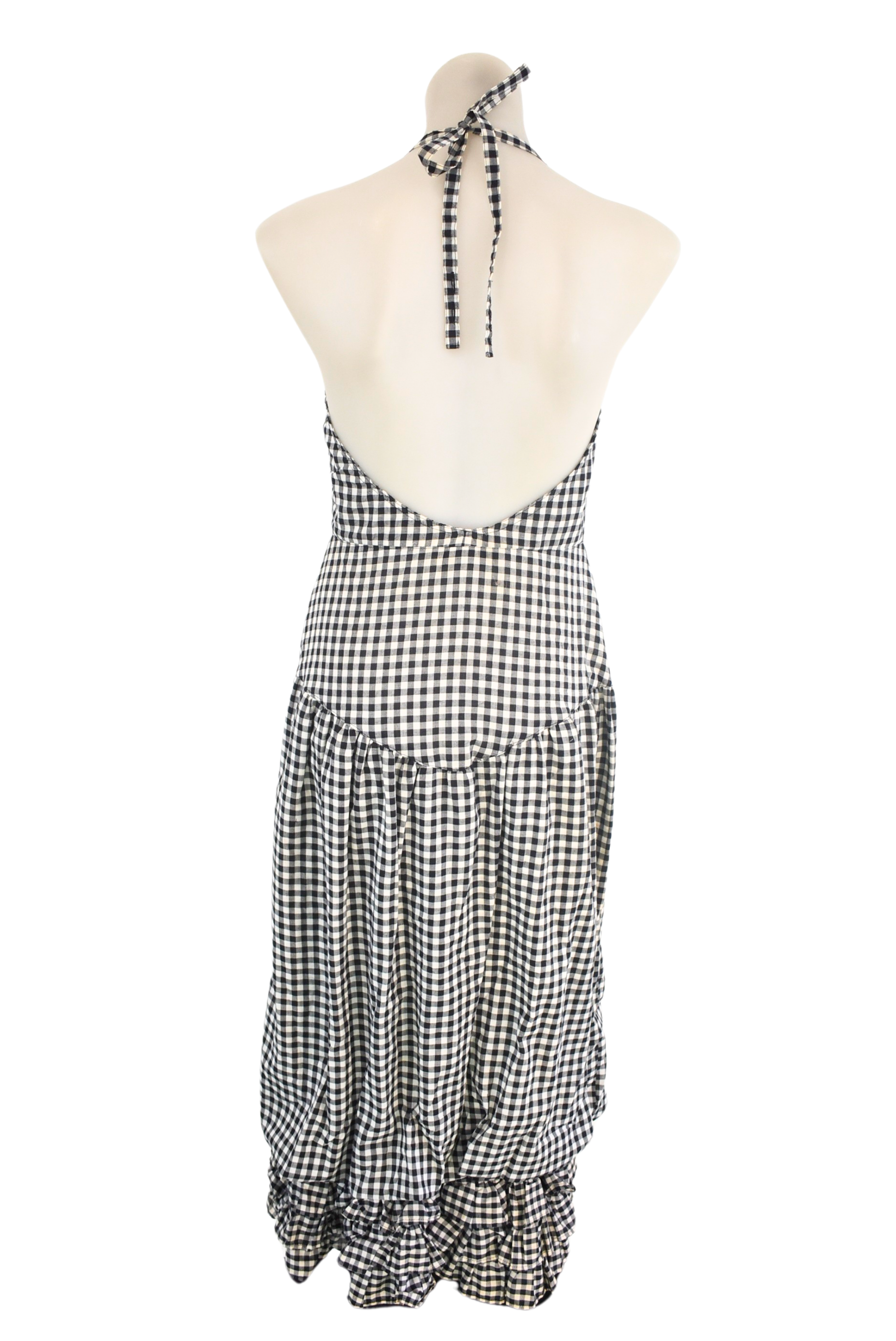 Description: A classic black-and-white checkered dress by Stewart Limmer, crafted from 100% cotton. This timeless piece features a flattering fit with a maxi length, perfect for both casual and semi-formal occasions.